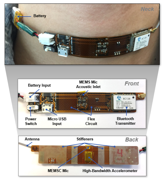 Mehta, D.D., Chwalek, P.C., Quatieri, T.F., & Brattain, L.J. (2017). Wireless Neck-Surface Accelerometer and Microphone on Flex Circuit with Application to Noise-Robust Monitoring of Lombard Speech. INTERSPEECH.